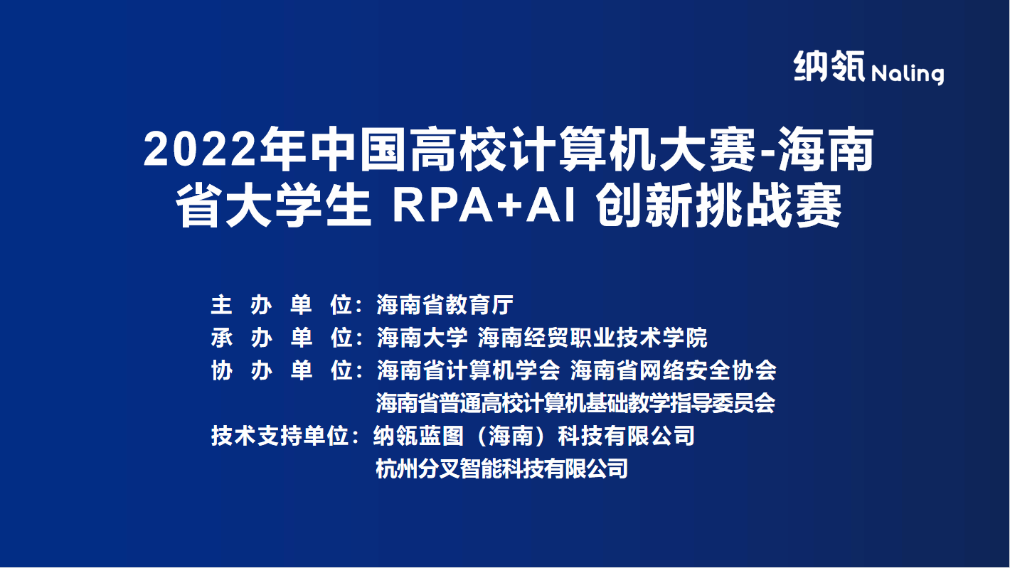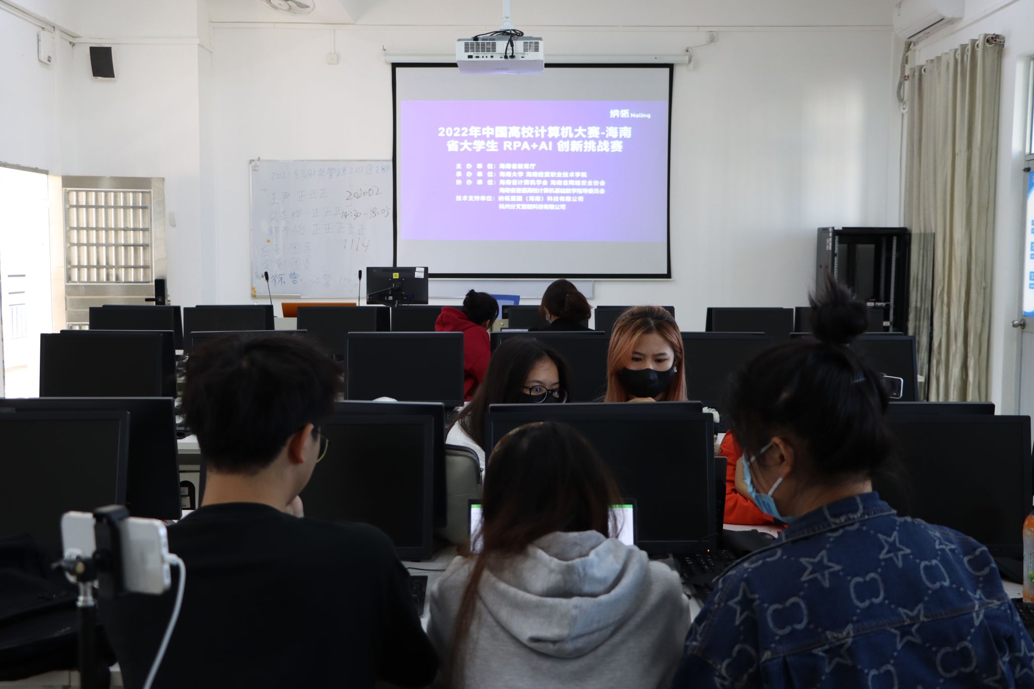 本次大赛由海南省教育厅主办,海南大学、海南经贸职业技术学院承办,海南省计算机学会、海南省网络安全协会、海南省普通高校计算机基础教学指导委员会协办,比赛方式采用线上进行。大赛赛程分为两轮,第一轮为12月11日基础应用及案例作品RPA基础应用环节,第二轮为12月18日现场答辩。本次大赛吸引了来自海南大学、海南师范大学、琼台师范学院等11所高校的90支代表队参赛,参赛师生人数超过300人,涵盖了计算机科学与技术、软件工程、物联网科学与技术、财务管理、会计学、金融学、酒店管理、电子商务、经济学、市场营销、税收学、物流管理、教育技术学、生物技术学、数据与应用数学、医药卫生等专业。