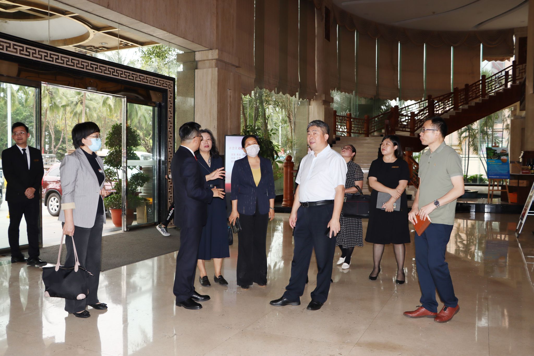 会前,银海强副校长一行先后参观了荷泰酒店客房、中餐厅、多功能宴会厅、多功能会议厅等配套设施,了解荷泰酒店的运营及管理情况。