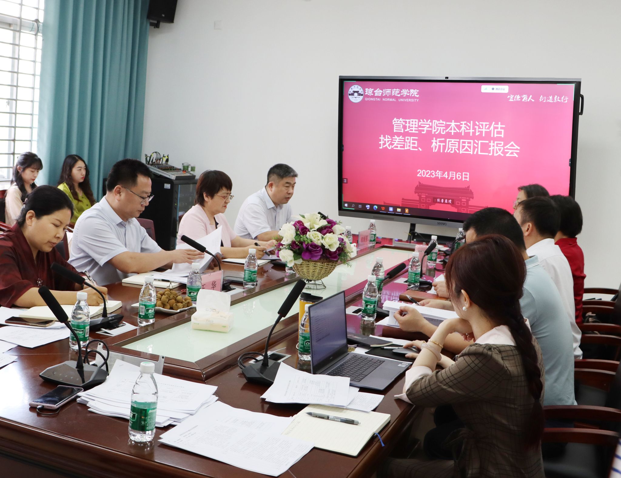 管理学院院长张艳对照本科教学工作合格评估体系20个二级指标39个观测点的要求,结合学院实际情况,从办学思路、教师队伍、教学条件与利用、专业与课程建设、质量管理、学风建设等,找寻差距与不足并提出下一步改进措施等方面进行了汇报。