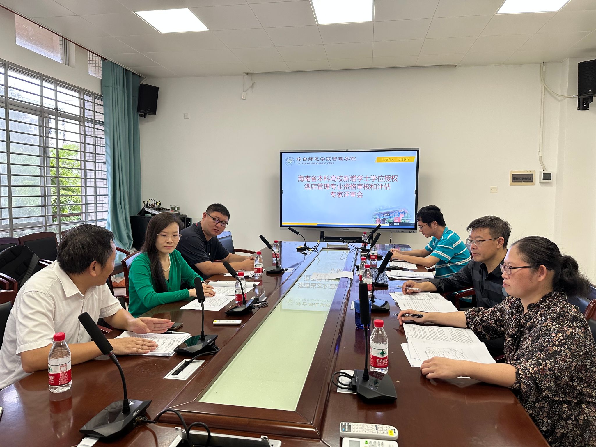评审会上,覃晓辉副主任首先介绍了新增学士学位授权专业资格审核和评估工作的流程和方法,提出了具体的工作要求。随后,陈立群主任向评审专家组作酒店管理专业自评情况汇报,严格对照《海南省普通高等学校学士学位授权专业审核标准》的要求,从专业定位、师资队伍、教学条件、教学过程与管理、质量保障等5个方面详细介绍了酒店管理本科专业自2020年举办以来的整体建设情况和取得的成果。