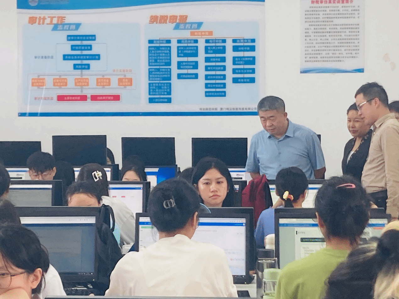 2023年10月29日,琼台师范学院银海强副校长、教务处石晶处长、管理学院颜松海书记、李婉琼副院长、厦门科云信息科技有限公司院校事业部副总经理林伟斌等一行人深入课堂了解学生们的学习情况。