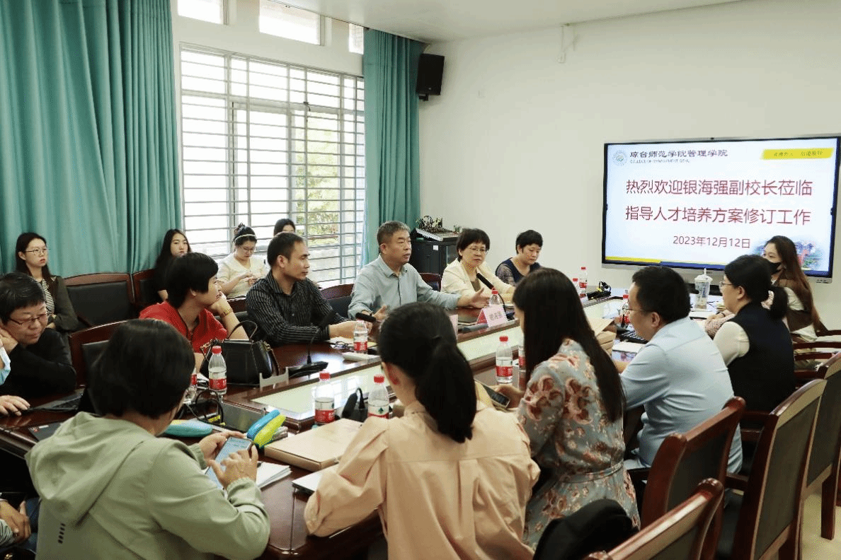 2023年12月12日下午,银海强副校长再次莅临管理学院,对年终绩效分配方案制定工作和本科人才培养方案修订工作进行深入指导。