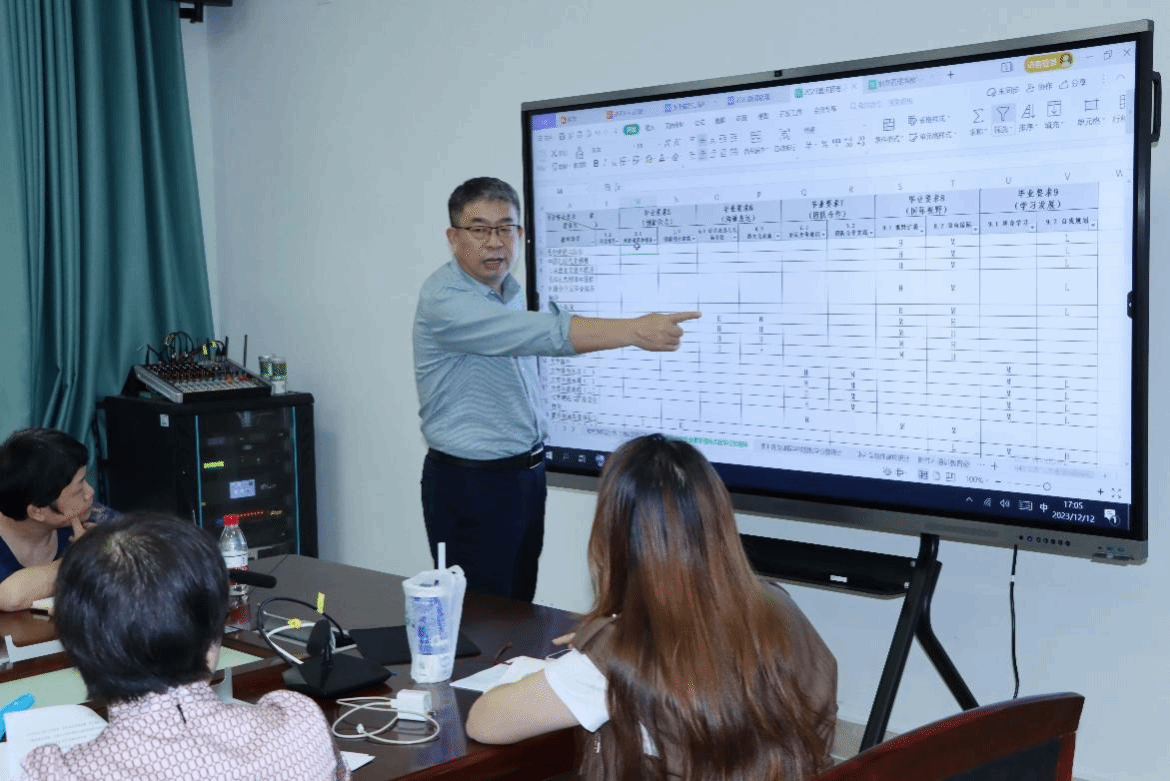 接着,银海强副校长再次强调人才培养各层次目标的设置逻辑性、科学性以及课程与毕业要求的支撑关系,还以财务管理专业毕业生创新能力培养目标的实现为例,结合其人才培养方案中毕业要求、课程体系、人培矩阵、课时学分、理实比例、产教融合等要点的修订与学院老师们进行了现场讨论,并做出具体指导。