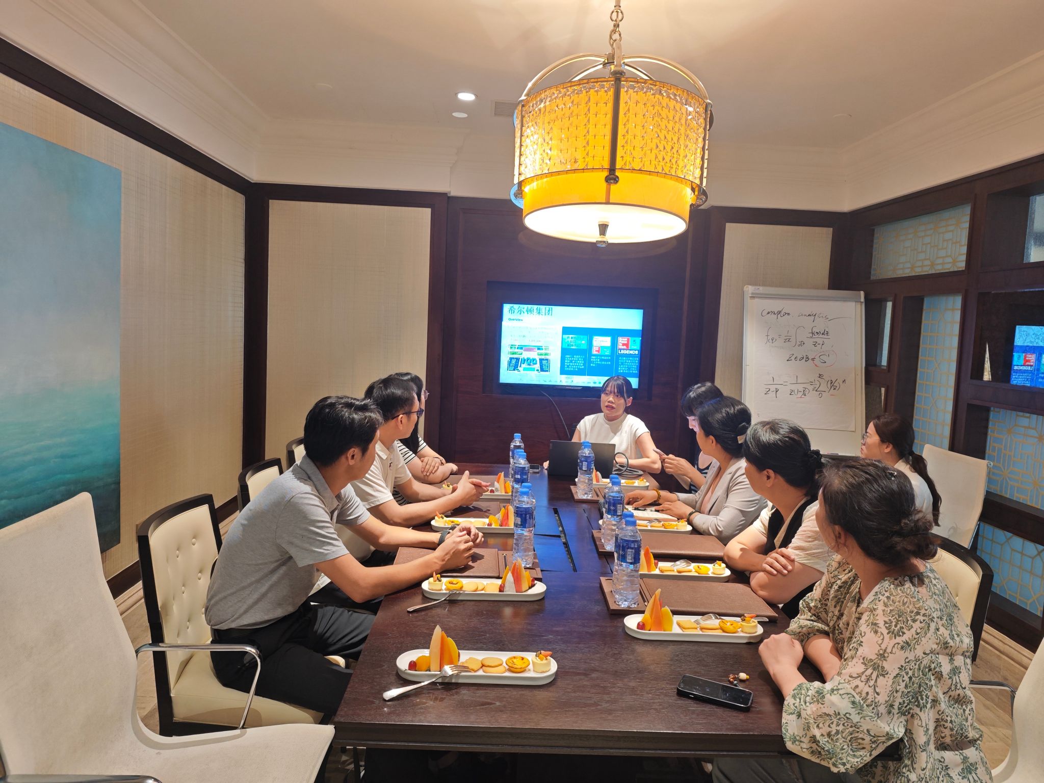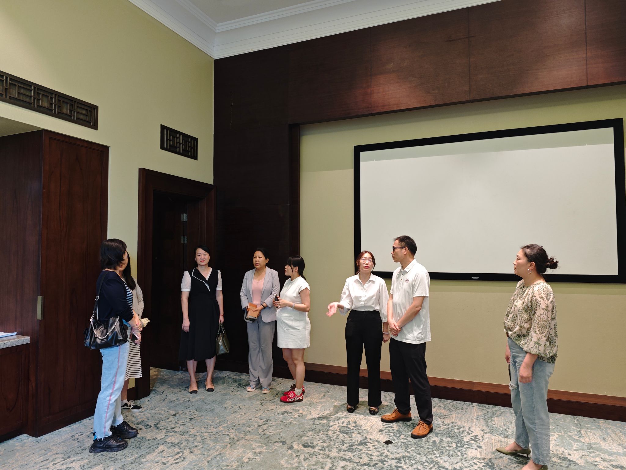 在酒店招聘经理王艳文及人力资源副经理陈京华带领下,参观了酒店的中餐厅、“沉浸式课堂”教学室等。随后,双方进行了深入的座谈交流。王艳文详细介绍了酒店发展规模、经营状况、人才需求及员工培养机制,并表示期待与学校开展深度合作,共同培养高素质的酒店服务与管理人才。