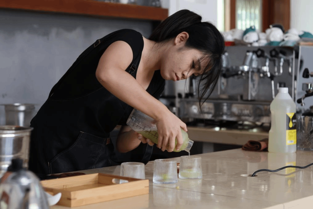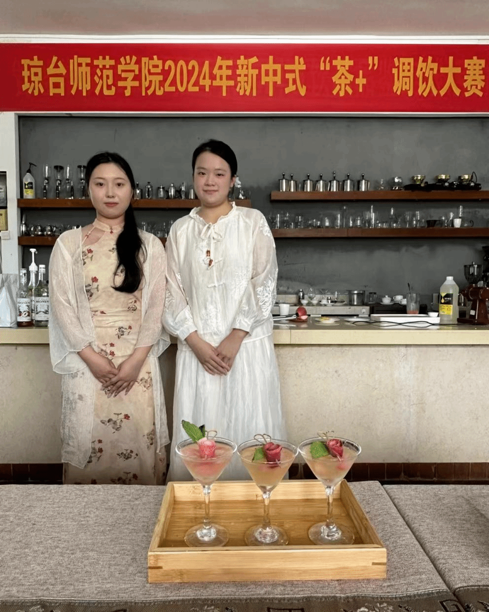 本次赛项是2024年琼台师范学院职业技能大赛赛项之一,在我院咖啡酒水实训室举行。在比赛中,参赛队伍在规定时间内进行调茶表演,选手自由选择大赛提供的茶原料,通过“茶+水果”“茶+奶”等创意搭配,现场制作出一款原创调饮作品。在调饮表演结束后,将创意茶品送至评委老师评审,并进行作品的讲解介绍,由评委老师从主题创意、调饮技艺、调饮质量、讲解等方面进行综合评分。