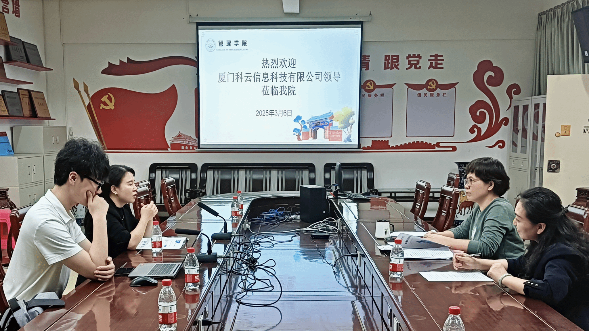 2025年3月6日,琼台师范学院管理学院副院长李婉琼、自贸港智能财务教育研究中心负责人万依云,与厦门科云信息科技有限公司省区总经理吴昊一行,就共建“智慧财务现代产业学院”校企合作内容展开深入研讨,共同探索财会专业教学转型与高素质技能人才培养新模式。