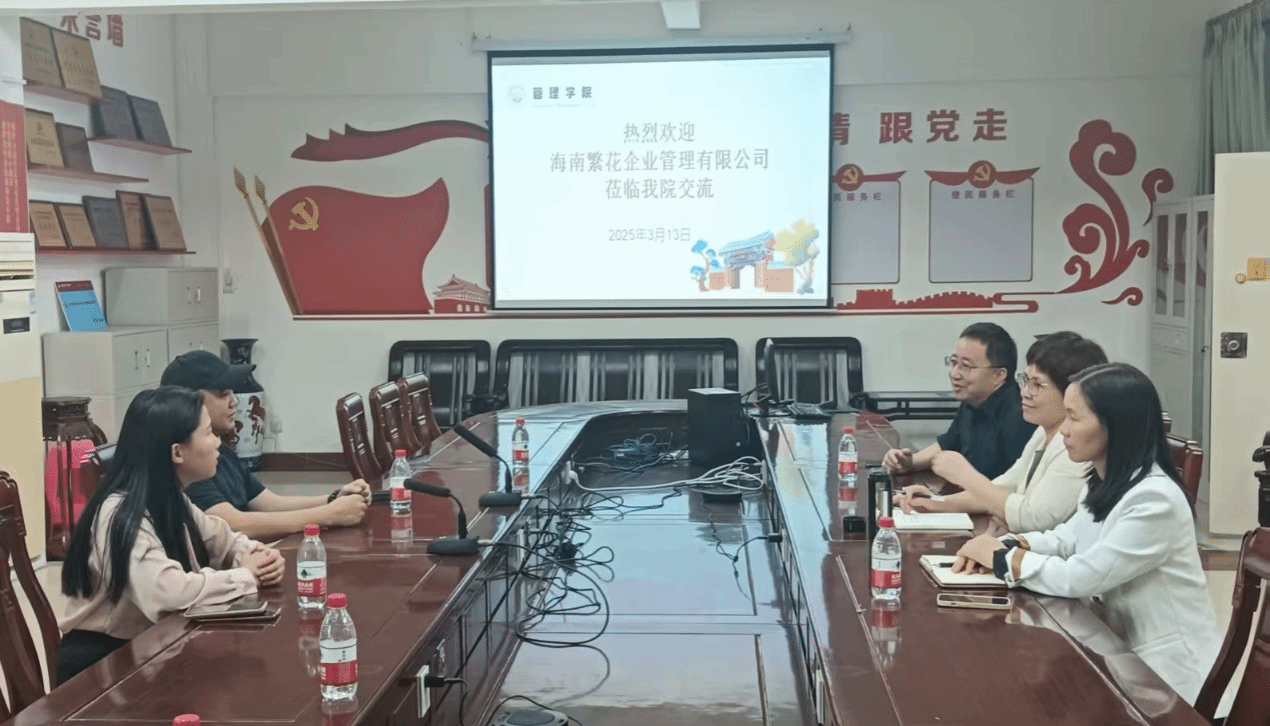 李婉琼副院长详细介绍了学院智慧财务现代产业学院的建设规划及校企实习实训平台的规划构想,致力于培养适应数字经济时代需求的智慧财务人才,通过与企业深度合作,将企业实际业务引入校园,将财务管理人才培养模式中传统的模块化实训模式进行改革,致力于实现系统的项目化实战,让学生在真实的工作场景中积累实践经验,契合企业用人需求,做到毕业即能上岗。海南繁花企业管理有限公司代表对学院的办学理念和人才培养目标表示高度认同,认为双方在智慧财务领域的合作前景广阔。双方围绕产业学院项目实践平台的运营模式、学生管理、校企师资融合等关键问题进行了深入交流。