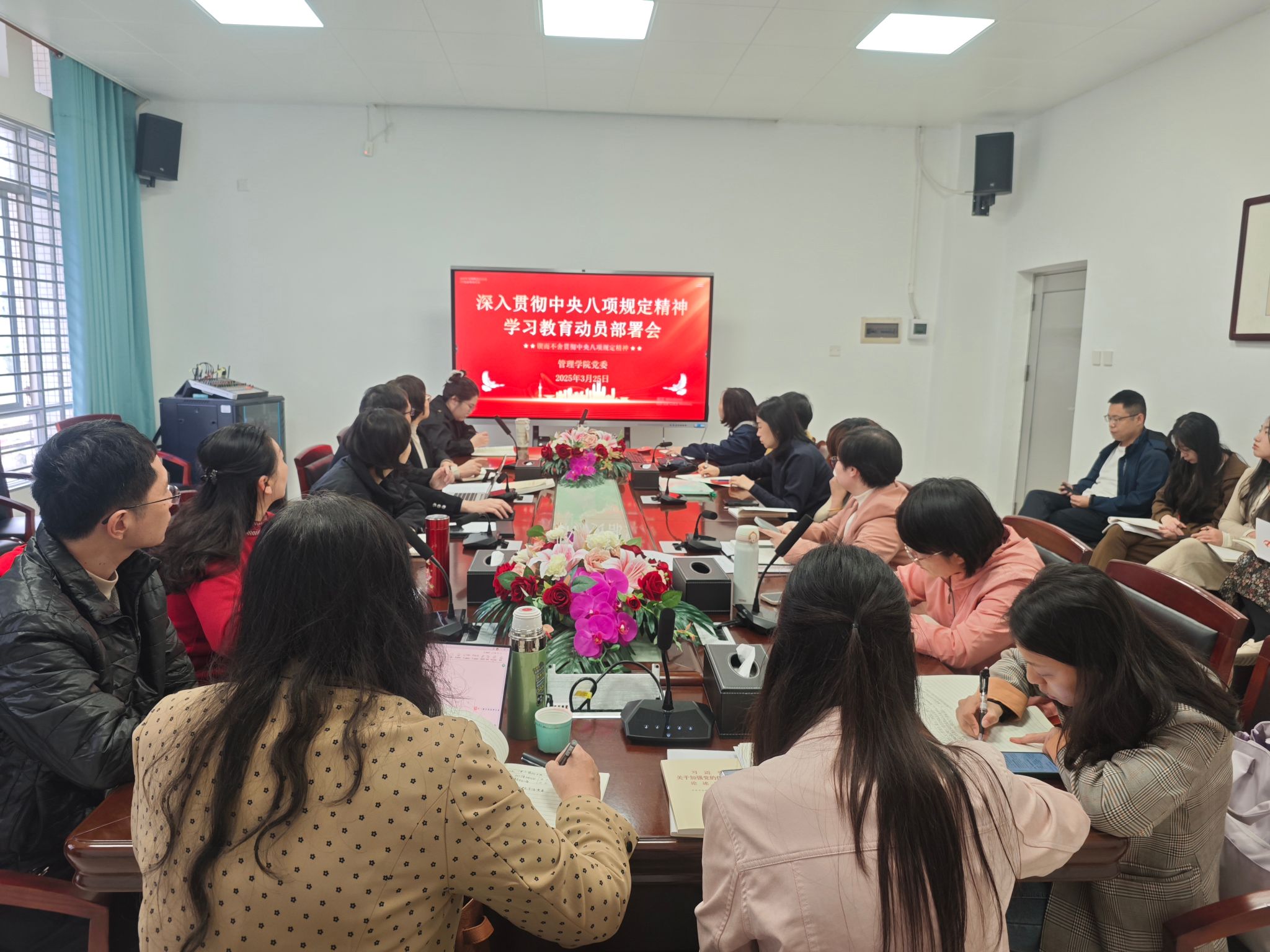 3月25日下午,我院在桂林洋校区衍道楼202会议室召开深入贯彻中央八项规定精神学习教育动员部署会。会议传达了省委、省委教育工委、校党委关于开展深入贯彻中央八项规定精神学习教育会议精神,解读了《关于在全院开展深入贯彻中央八项规定精神学习教育的工作方案》。学院全体教师党员参加会议,党委书记颜松海作动员讲话。
