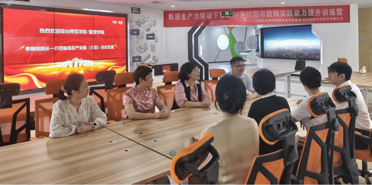 当日下午,调研组赴用友产业园(三亚)开展实地调研,与产业园负责人李毅飞总经理围绕省级智慧财务现代产业学院的建设工作展开深度探讨,双方聚焦产业需求导向、教学资源共享、产教深度融合等核心议题,共同探索校企联动的实践创新路径,为进一步提升应用型财经人才培养质量筑牢平台基础。