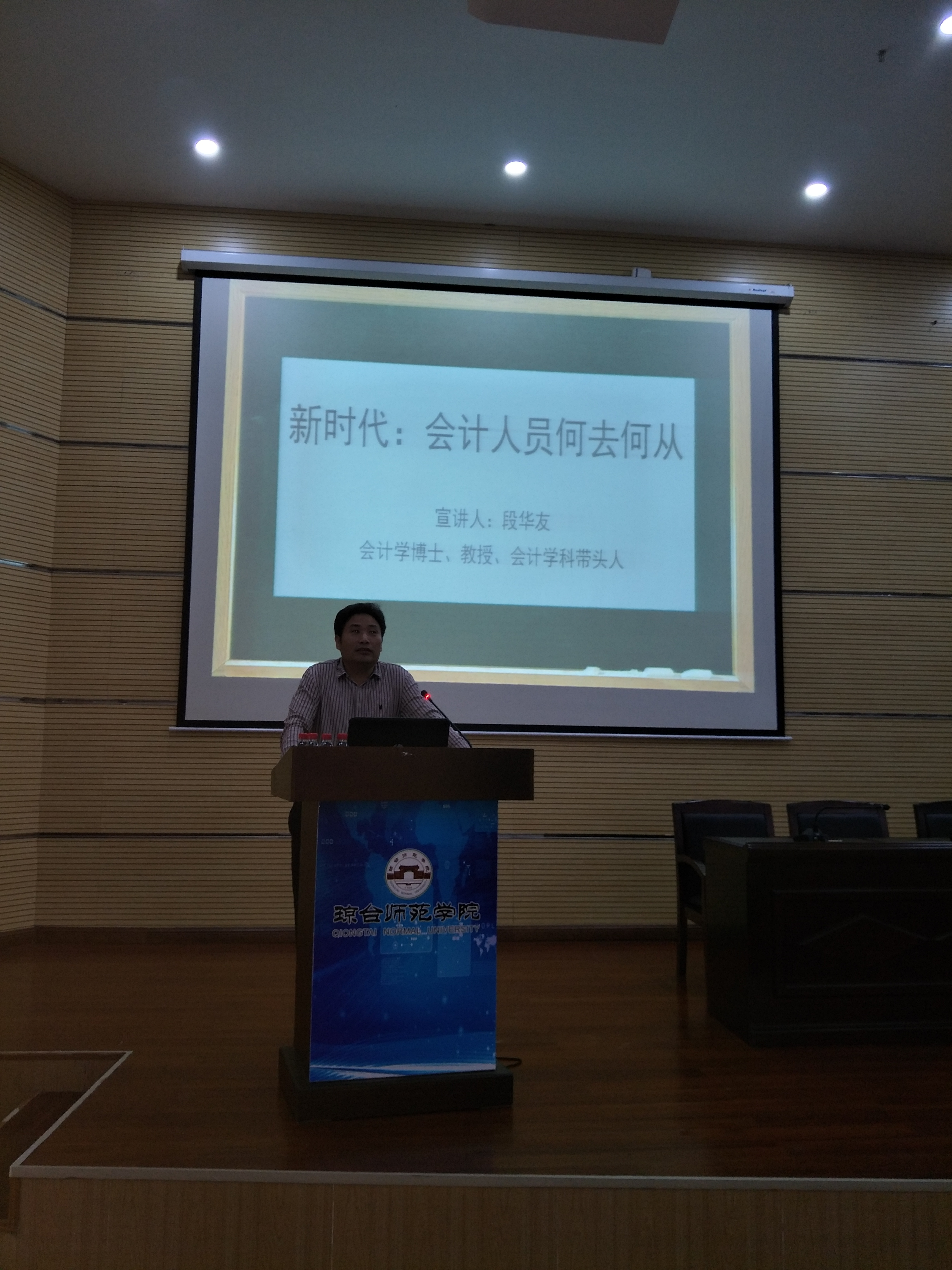 段博士从现在最为流行的“网上购物”切入主题,以实际生活中的事例为引,简单阐述了新时代人们生活发生的变化,进一步指出在网络化时代、共享化时代、智能化时代会计人员所面临的挑战和机遇。另外,段博士还就创业财务管理进行深入讲解和剖析,鼓励大家努力学好专业知识,提升专业能力,成为新时代合格的会计人才。