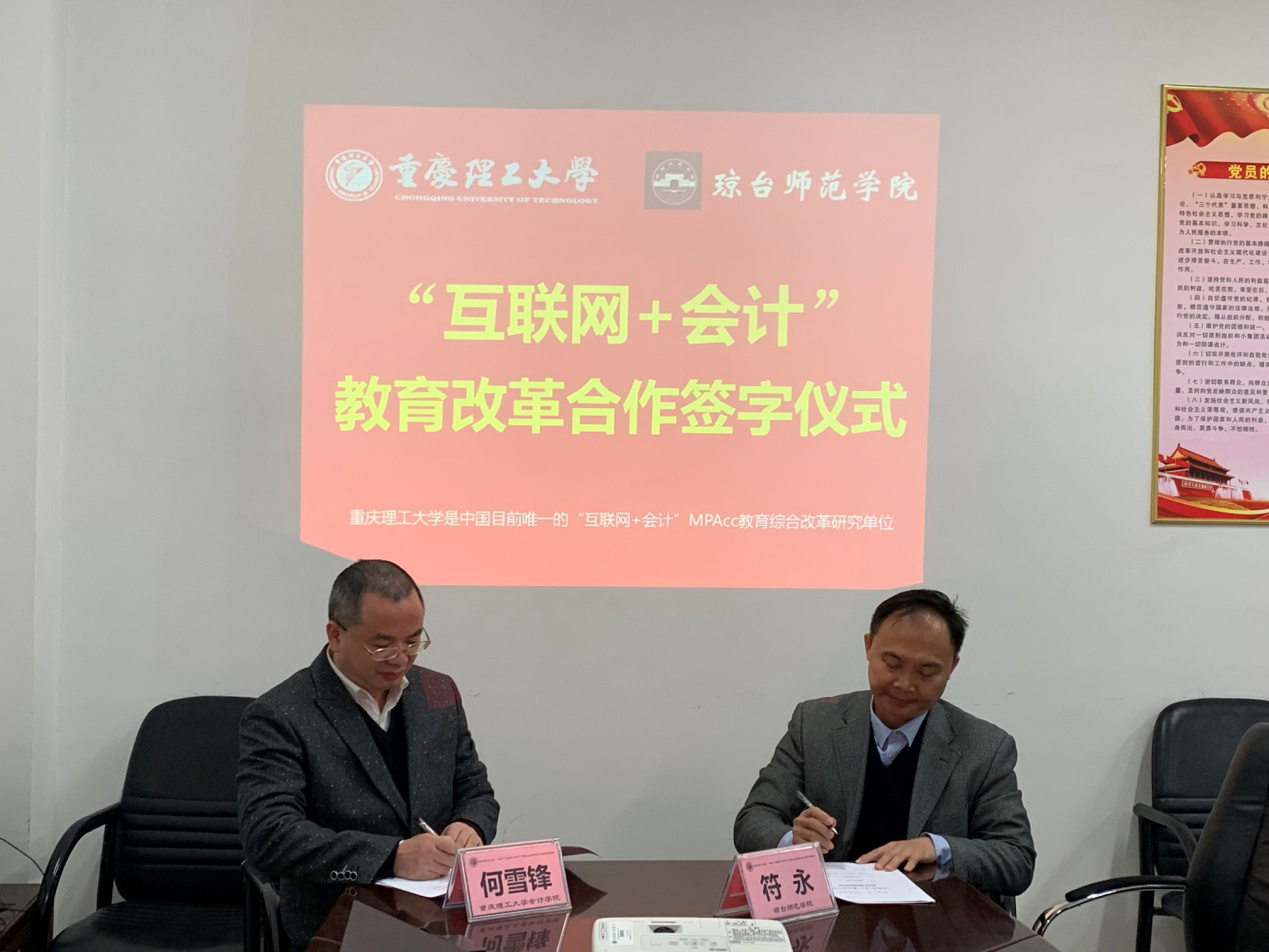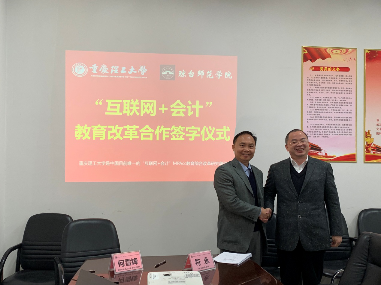 在详细商谈了有关合作细节之后,符永书记代表学校与会计学院何雪锋院长签订了“互联网+会计”教育综合改革合作框架协议。此次调研,进一步加强了我校和重庆理工大学交流合作的纽带作用,拓宽了财会专业人才培养的视野。(李婉琼供稿)