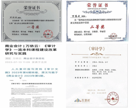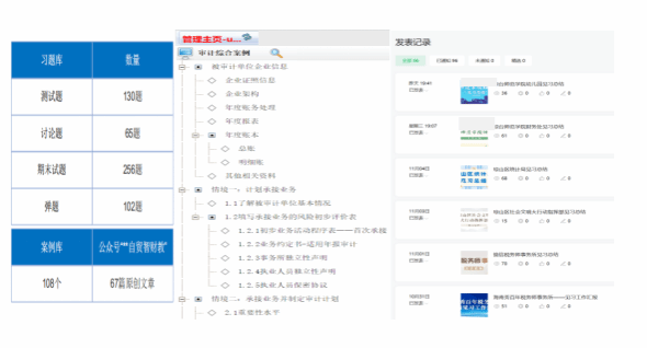 校内课程组携手企业导师,从职业分析入手,分解出审计职业的综合能力、单项能力及知识要素,修订课程大纲,重新编写教材。企业导师基于实际审计场景需求,提供智能审计工具操作指南、行业风险案例等核心内容,确保教材内容与产业技术同步更新(如新增“区块链辅助审计技术”章节)。同时,配套理论教材打造《审计综合案例实训》教材和案例视频资源,14名教师录制了13章51个视频680分钟,配套500道题和35个PPT,完成了智慧树平台的建设内容,线上共享课入选2023年“精品课”。主编专著《区块链技术与现代审计耦合研究》《区块链产业应用及审计技术体系的构建》,同时还有软著应用及打造产业学院。开发“自贸智财教”公众号,实现实践项目线上协作,收集发表学生的小组案例及推文,形成案例库。发表核心期刊论文,相关教改论文被人大复印资料全文转载。课程团队获全国高校教师教学创新大赛新文科组一、二等奖。
