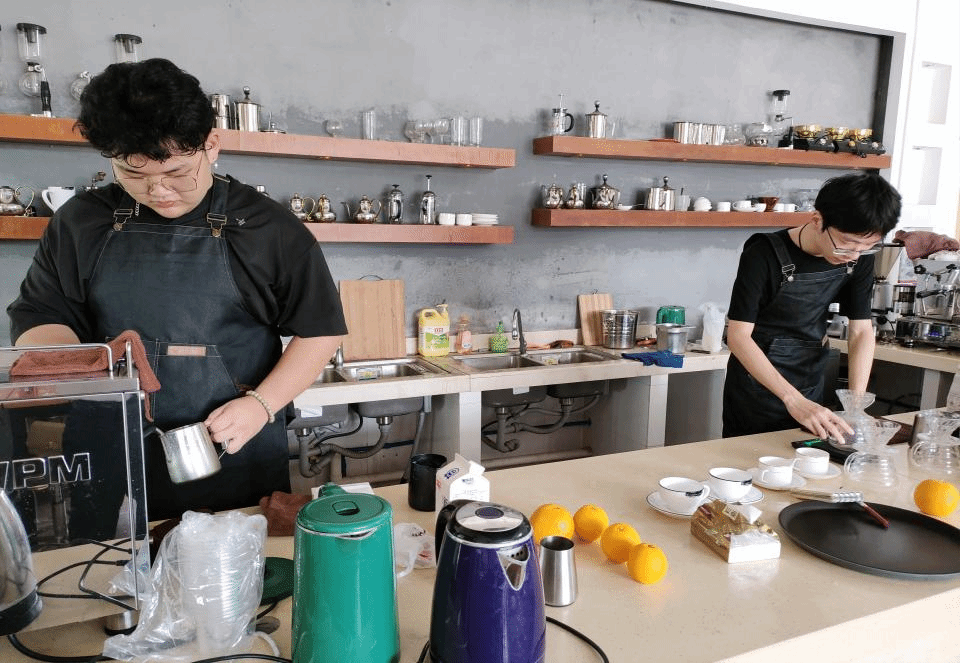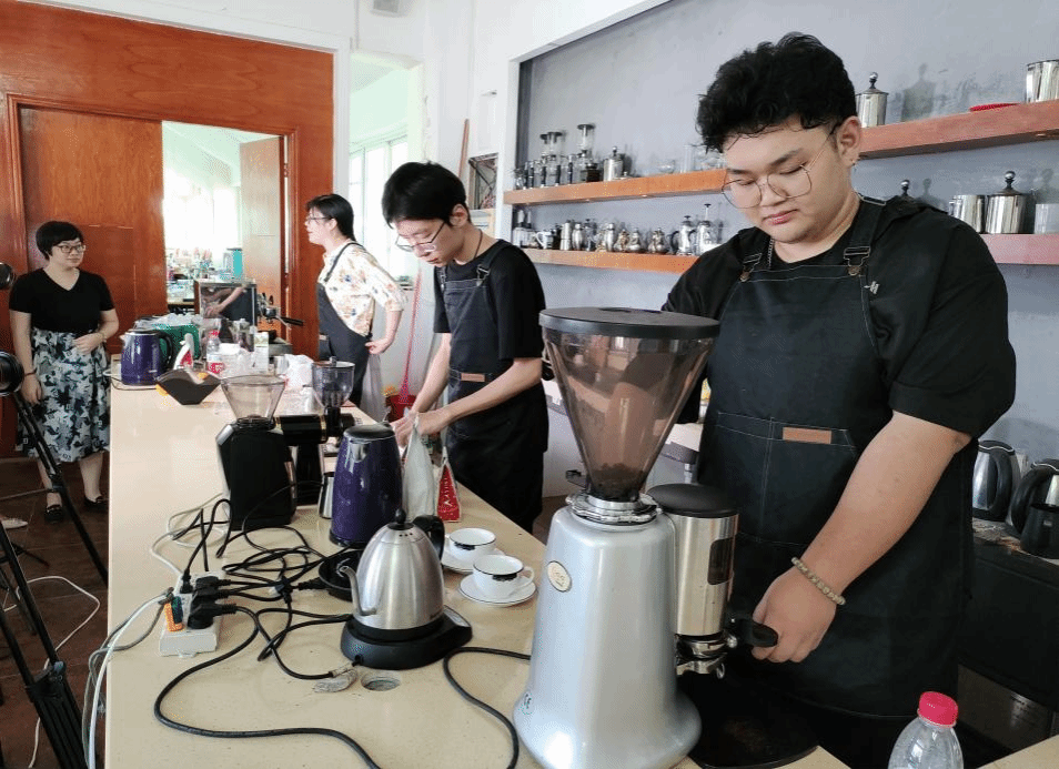 为了提高学生的实践能力,让学生在实践中获得对专业课程学习的新的感知,提升学生的职业素养,本次教研活动由2020酒店管理班学生范钰坤、王羽中昊、2021旅游管理班学生王进进行会议服务实践。范钰坤、王羽中昊主要负责咖啡点单、制作、服务工作,王进负责会场布置、会议协调等工作。
