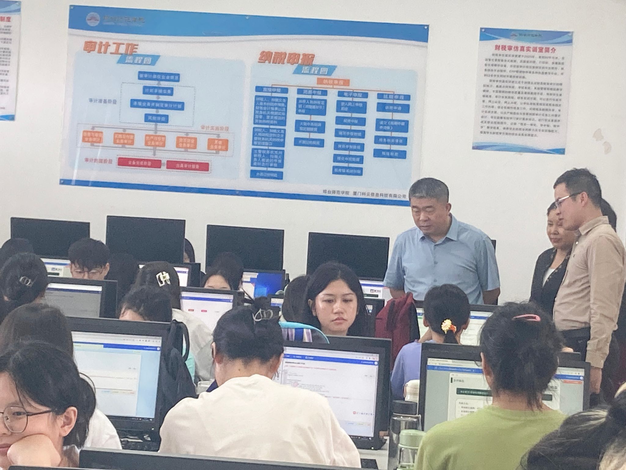 银海强副校长一行还深入“一课双师”科云财务大数据分析创新班的课堂了解学生们学习和实训的情况。