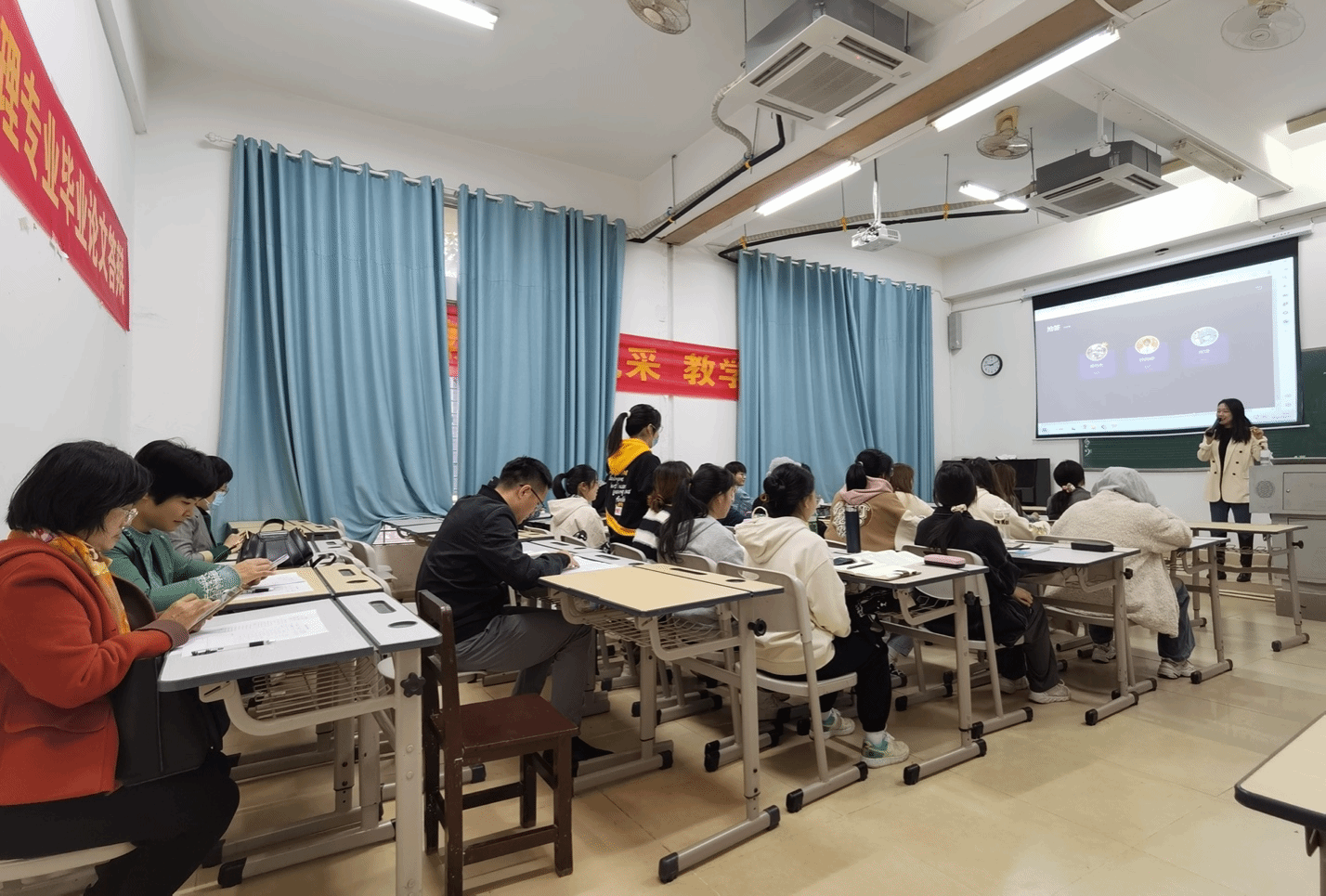 基于首批校级双语教学示范课程建设项目,我院旅游与酒店管理系于12月21日上午成功举办了《酒店市场营销》双语公开课活动。教学质量监测与评估中心黄细渭副主任、张梦影老师,学院副院长李婉琼,学院督导党春艳、万新焕参与了此次活动。