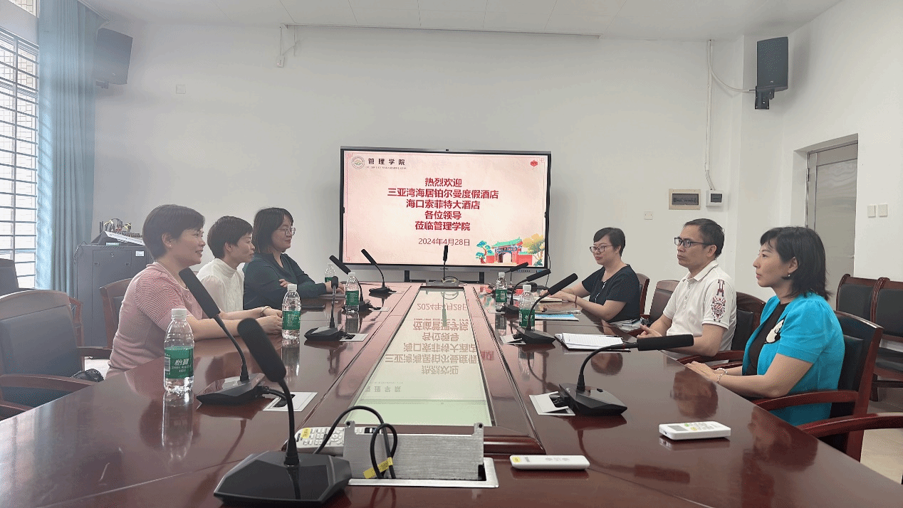 4月28日下午,雅高酒店集团三亚湾海居铂尔曼度假酒店人才与文化总监胡杰女士、海口索菲特大酒店人才与文化总监邱清颜女士一行莅临我院,就校企合作事宜展开深入洽谈。我院党委书记颜松海、副院长魏晓楠、旅游与酒店管理系主任陈立群出席了洽谈会。