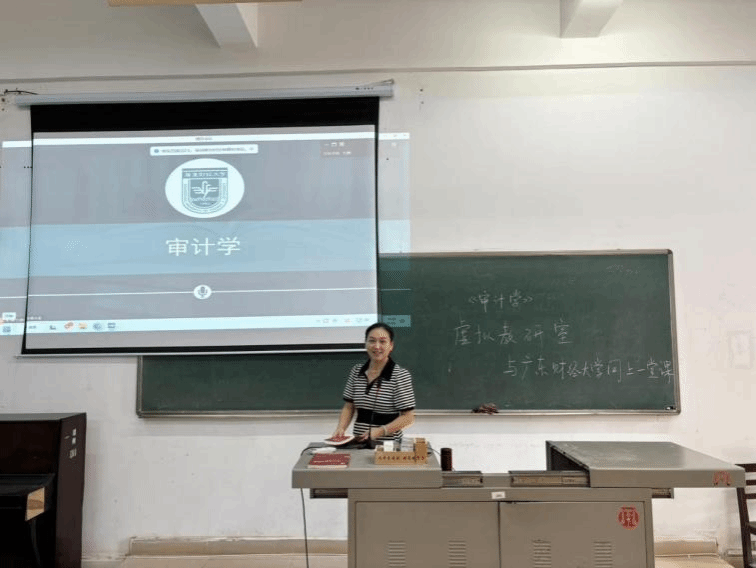 2024年10月25日10时10分,在琼台师范学院(桂林洋校区)培训楼105教室,由广东财经大学和琼台师范学院通过腾讯会议连线,共同展开了《审计学》课程的虚拟教研室活动。本次课堂我们隆重邀请到了广东财经大学《审计学》的授课老师——杜静老师,在为广东财经大学学生上课的同时,连线为琼台师范学院管理学院2023级财务管理3(专升本)班实时授课,实现了我们与广东财经大学的同学们共上一堂《审计学》课。