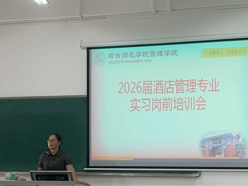 为助力2026届酒店管理专业学生顺利开启实习征程,6月17日周二14点,管理学院于桂林洋校区综A203教室召开实习岗前培训会。会议围绕实习关键环节展开,为即将踏入实习岗位的同学们精心搭建起坚实的“知识堡垒”。