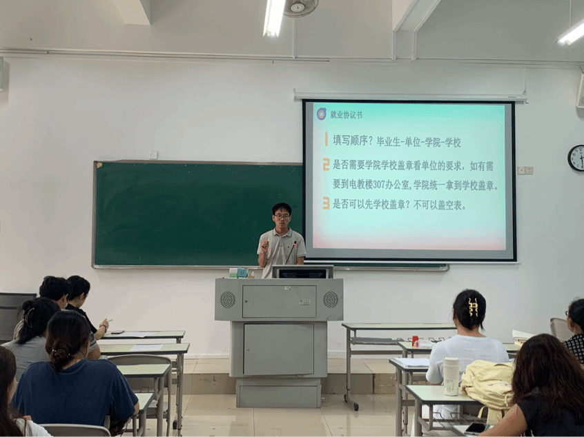 培训临近尾声,钟景伟老师对就业材料填写规范进行了解读,详细说明各项条款的填写要求与注意事项。同时,他着重提醒同学们及时做好毕业第二课堂毕业学分要求,梳理学分完成情况,积极参与相关活动补齐学分,确保顺利毕业。此外,钟景伟老师还对学期末校区宿舍搬迁工作进行了讲解,从搬迁时间安排、物品打包注意事项到府城校区宿舍分配规则等,为同学们提前做好搬迁准备提供清晰指引。