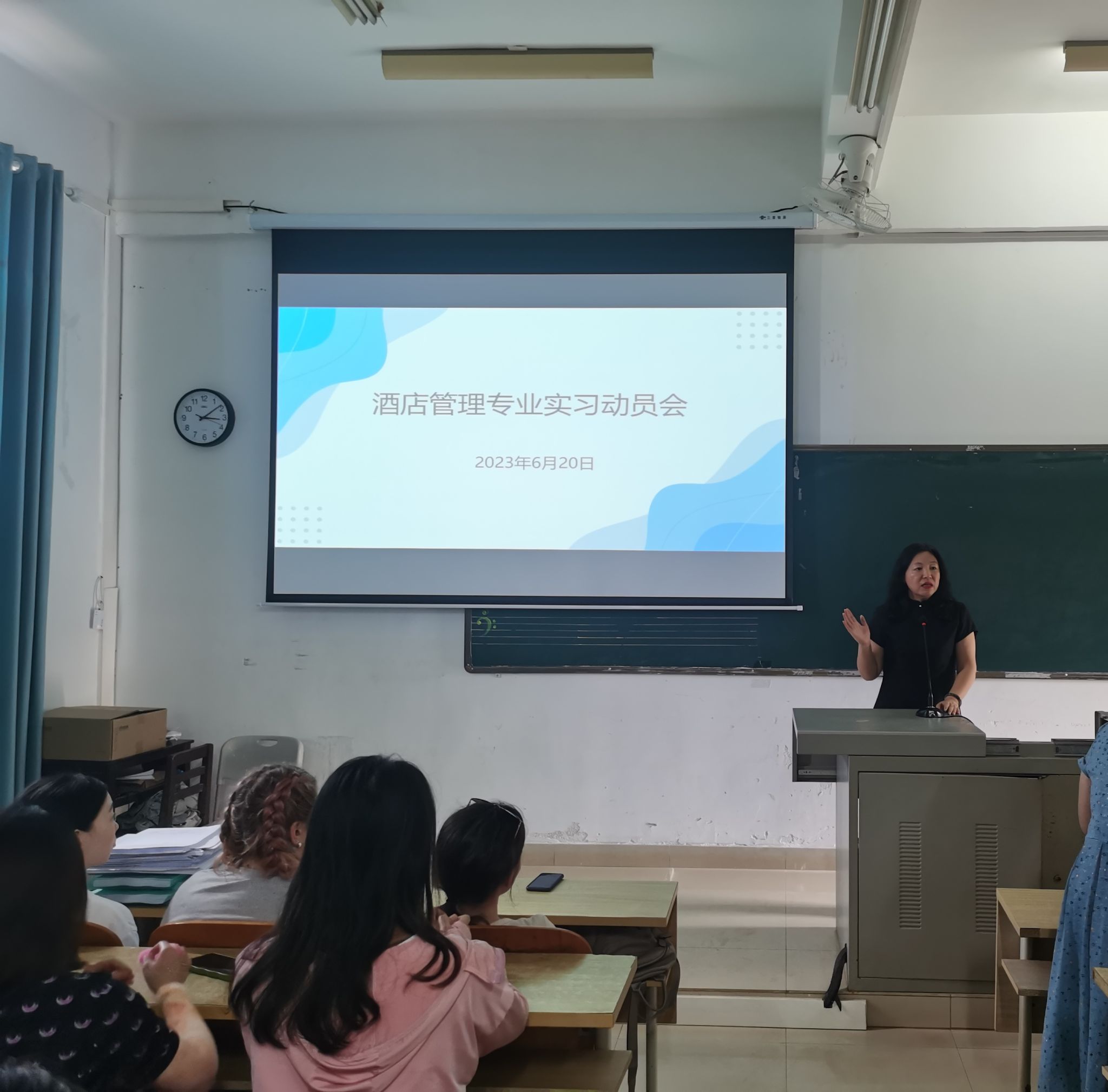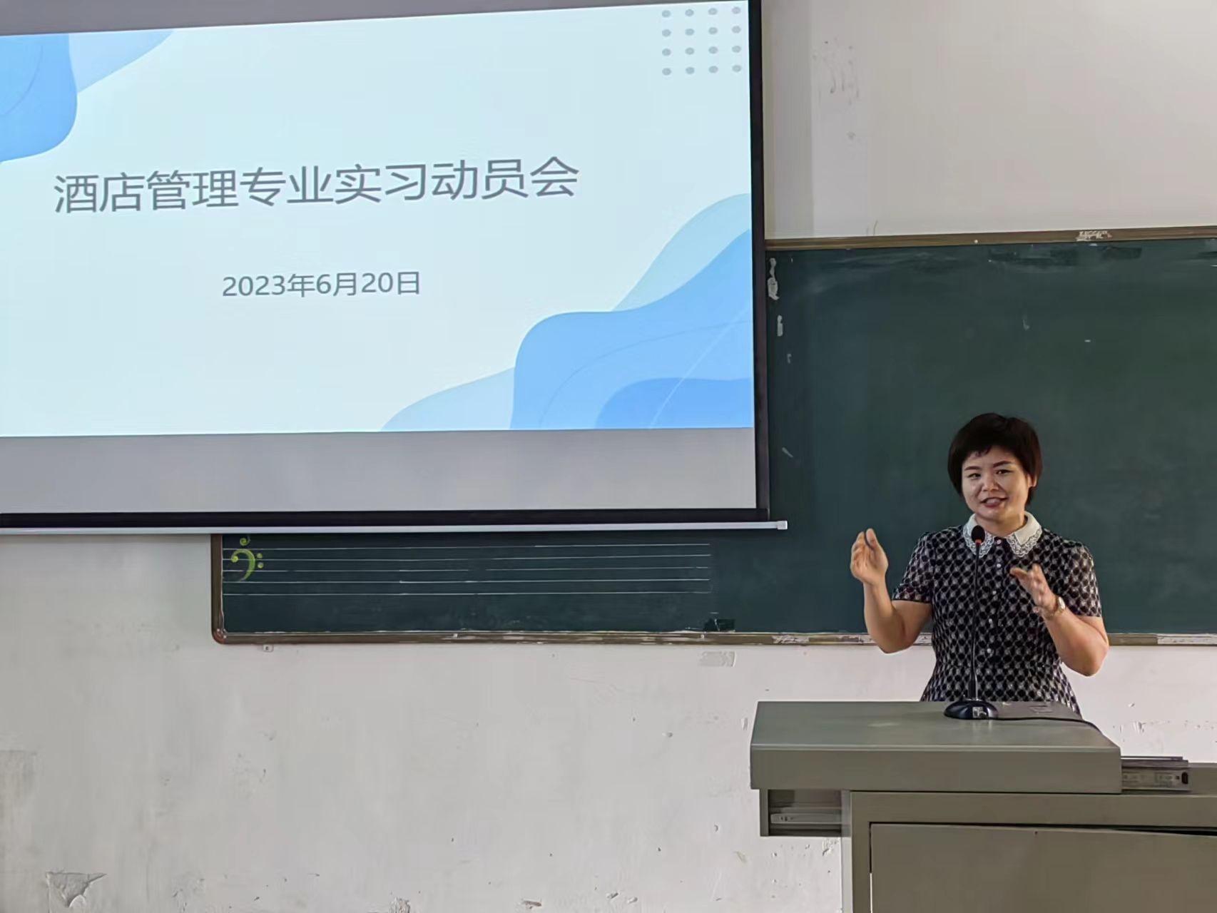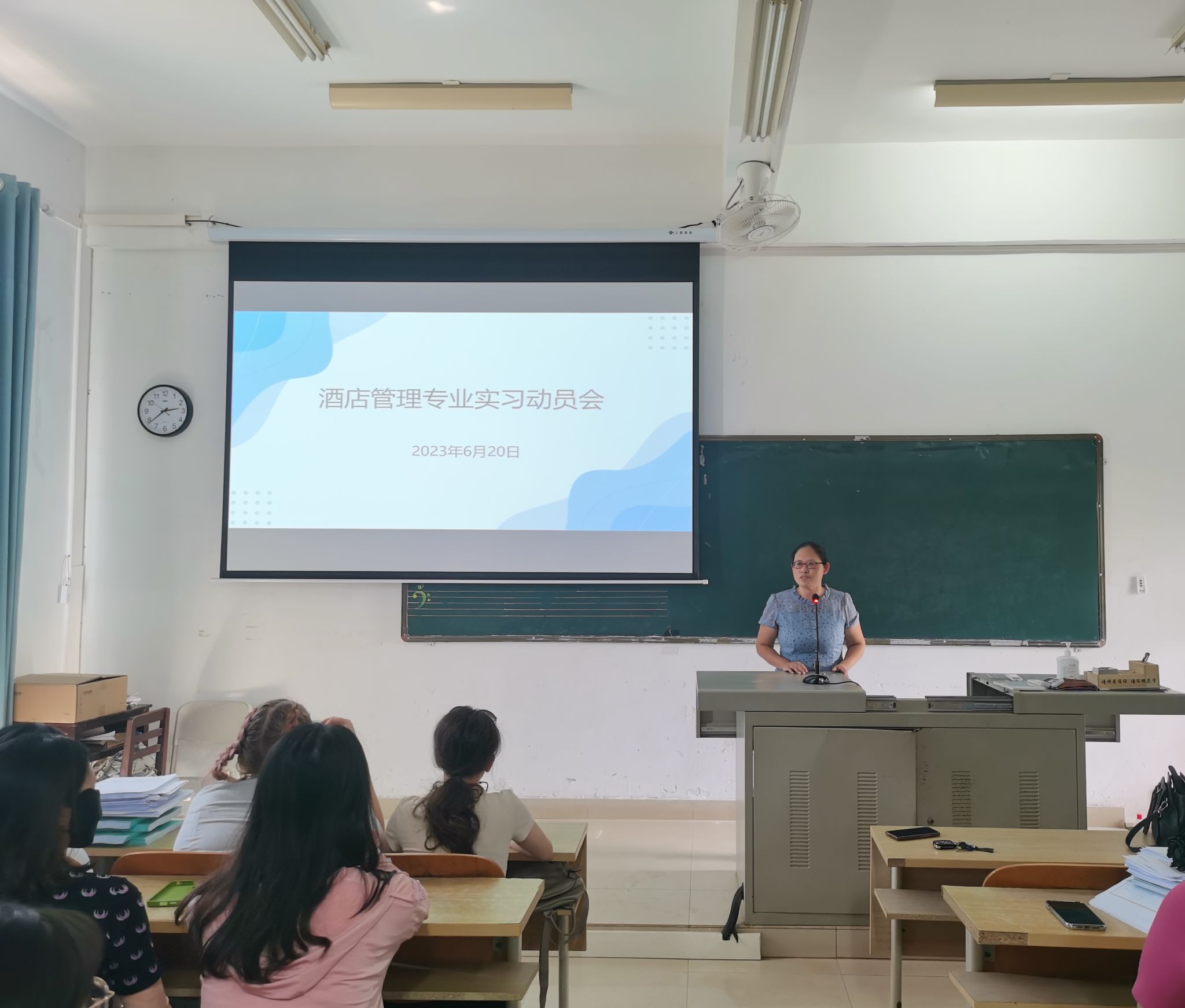 为切实推进我院2024届旅游与酒店管理系学生实习工作有序开展,学院于2023年6月20日下午2:30在培训楼207教室召开2020级酒店管理班、2021级旅游管理班、2022级酒店管理2班专业学生毕业实习动员大会。学院领导、旅游与酒店管理系主任、实习指导老师、辅导员老师以及相关班级全体学生参加了会议。会议由旅游与酒店管理系副主任李贺老师主持。