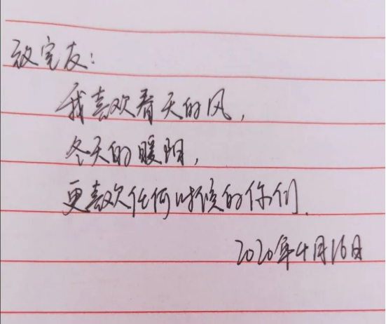 当提笔写下致室友的三行情书,相处的场景在同学们的脑海里放映,短短的三行情书描述了大学一同走过的点点滴滴,字里行间吐露着细腻的感情,或盈满祝福,或饱含思念,或充满感谢。