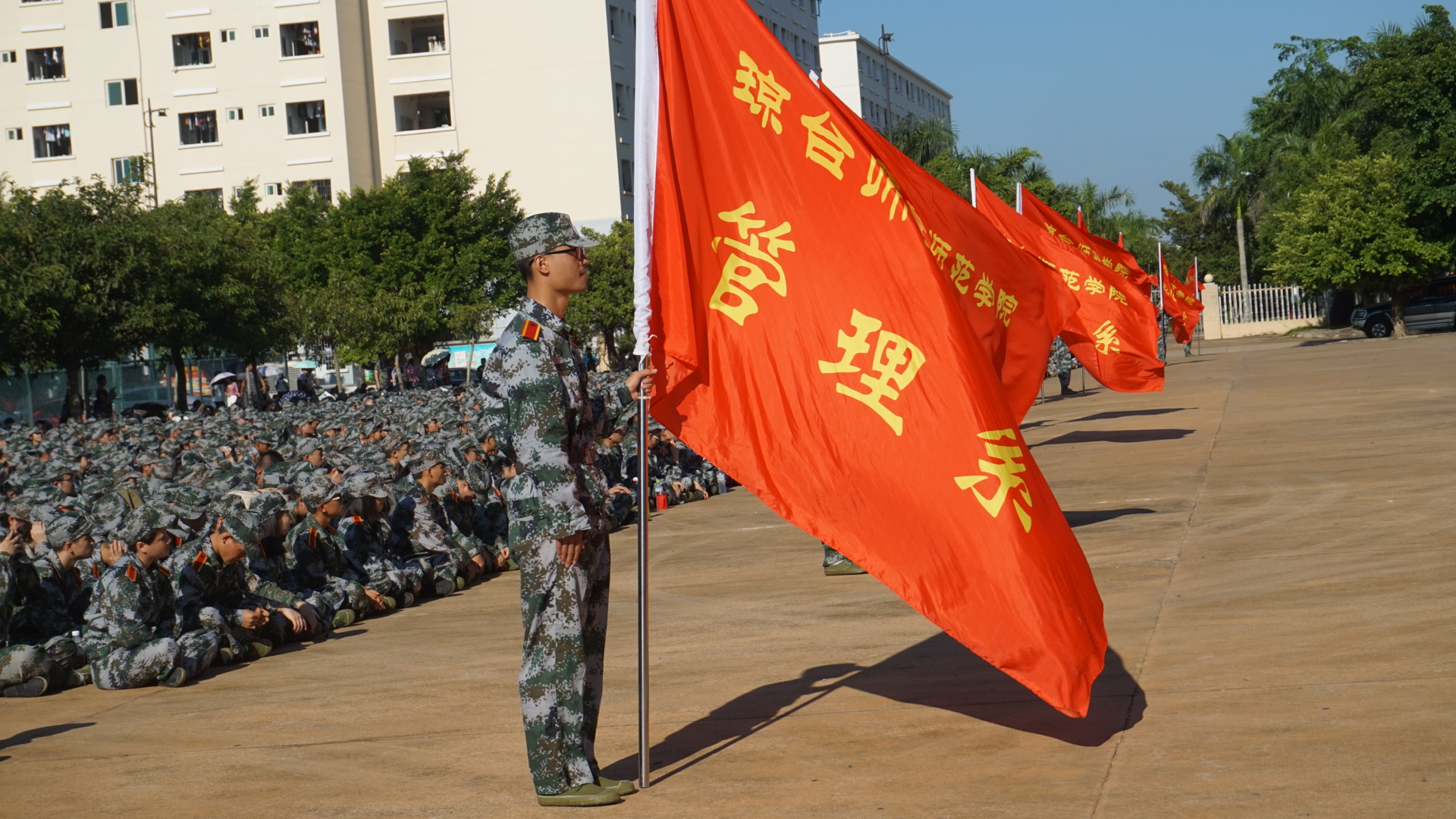 海南的天气依然炎热,但我系学子的军训热情不减,他们精神抖擞地参与到了各个项目的训练当中。在训练中,他们顶着烈日,挥汗如雨,克服困难,毫不退缩。有的学生中暑了,有的学生皮肤被晒伤了,有的同学病倒了,他们凭借着顽强的意志,稍有好转便坚持训练,在教官的严格训练下,在短短的3天时间里,齐步走、正步走、齐步变正步、解散、集合及分列式等预定训练科目已初见成效。