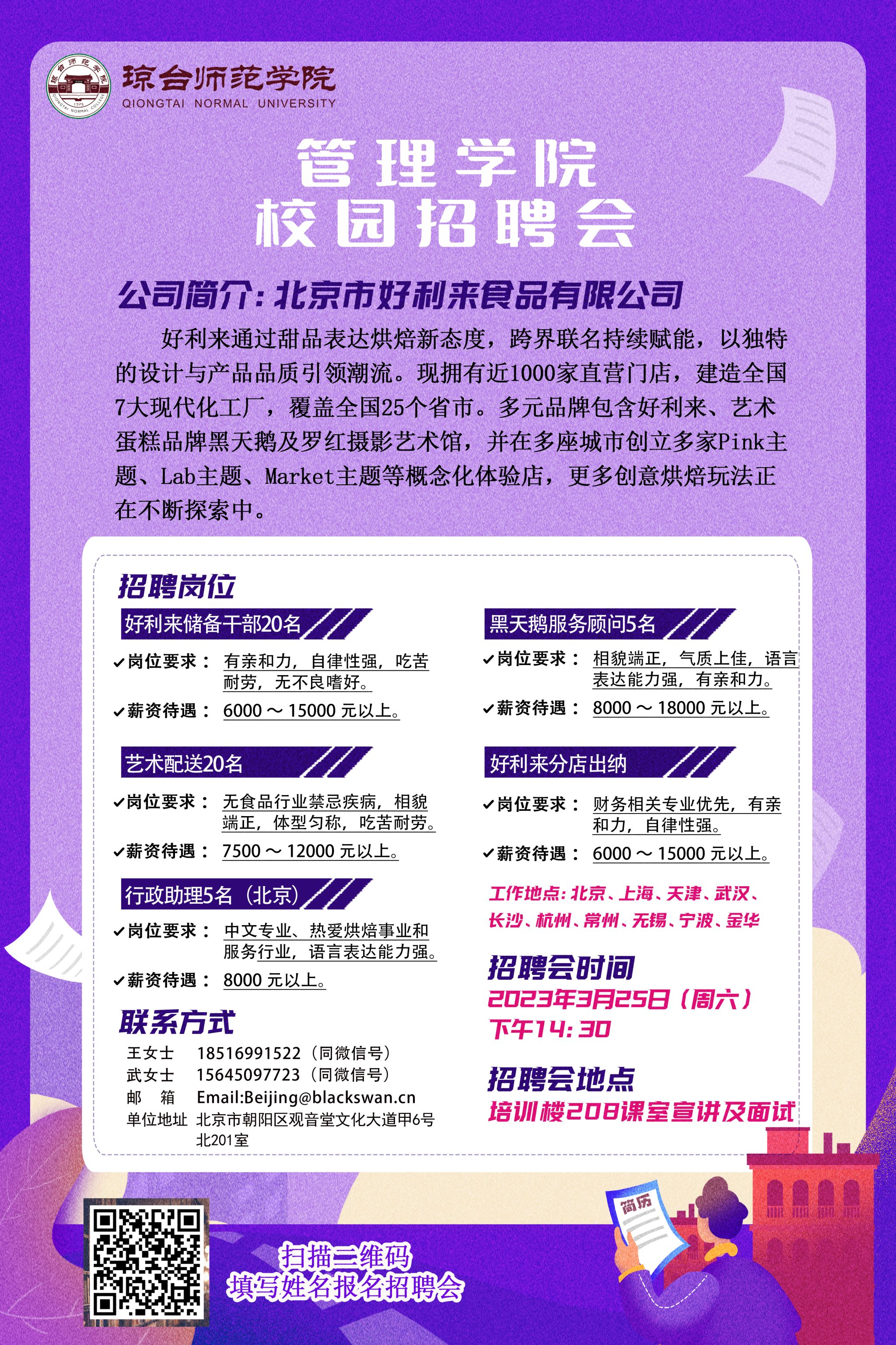 【管理学院校园招聘会】北京市好利来食品有限公司招聘宣讲会