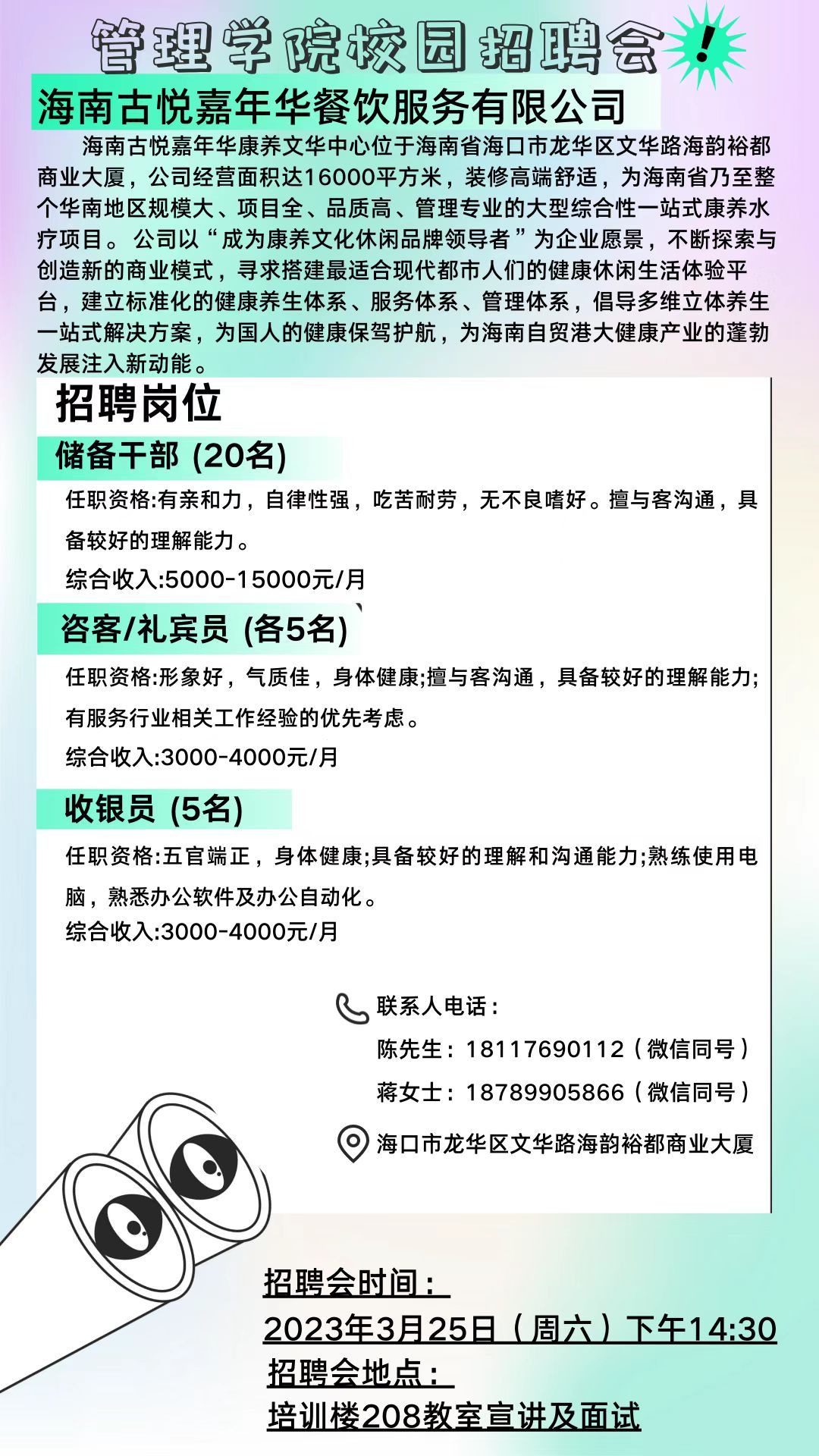【管理学院校园招聘会】海南古悦嘉年华餐饮服务有限公司招聘宣讲会