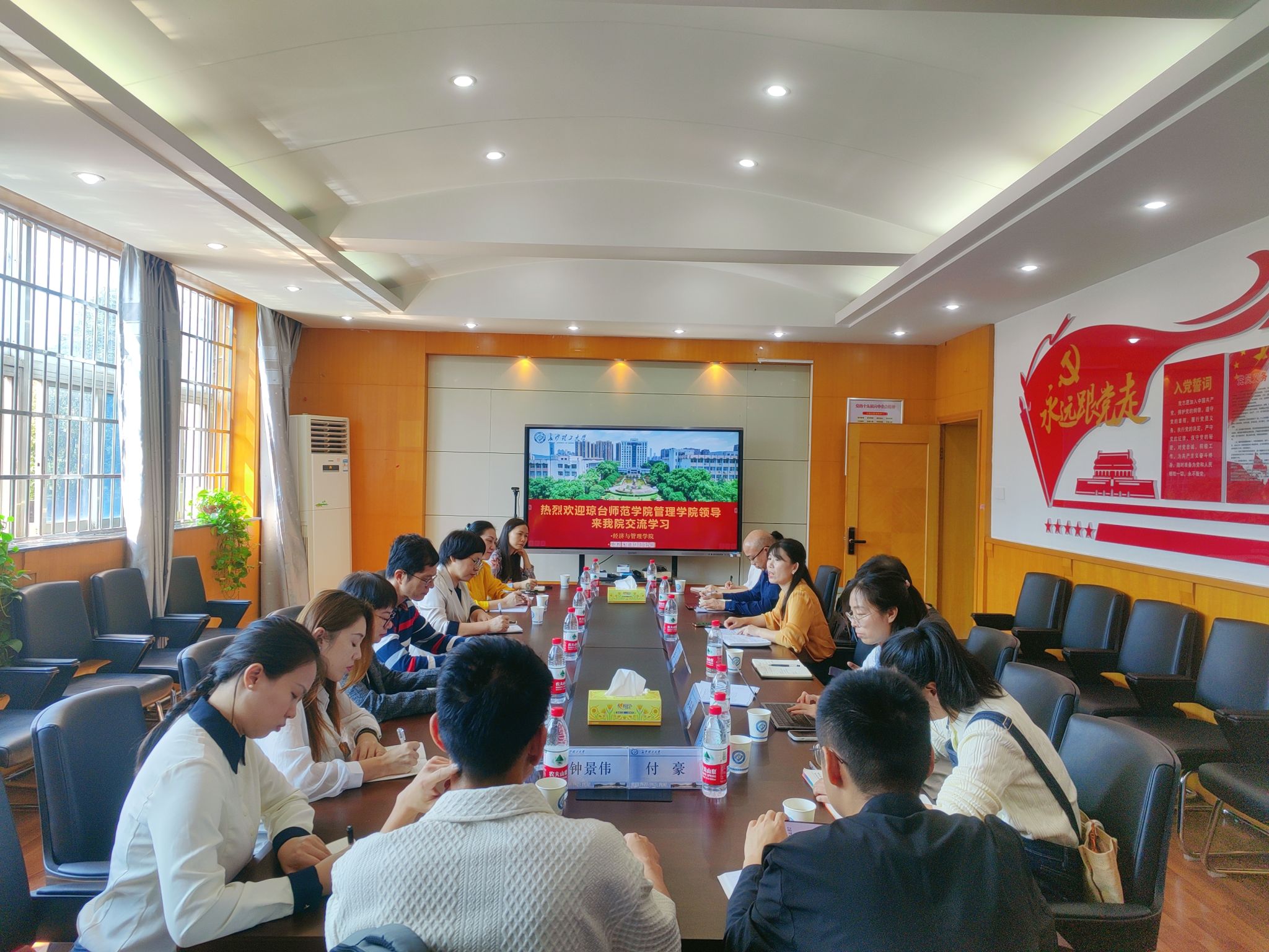 10月16日,我院一行人员来到长沙师范学院经济管理学院进行交流调研。长沙师范学院经济管理学院党总支书记罗柱、党总支副书记钟琴、科研副院长刘靖宇、教学副院长李红娟等学院领导热情接待了我院一行人员,双方进行了座谈。罗柱书记向全体参会人员介绍了长沙师范学院和琼台师范学院同为百年师范、红色学府的办学历史,李红娟副院长介绍了长沙师范学院经济管理学院本科教学合格评估工作的总体情况和经验,李婉琼副院长介绍了我院为迎接本科教学合格评估所做相关工作情况,双方都表示愿意进一步加强交流。座谈中我院各部门负责人提出了在迎接本科教学合格评估工作中遇到的相关关切问题,长沙师范学院经济管理学院相关负责人则就提问在师资队伍建设、学科发展规划、课堂教学、试卷论文检查、实习实训基地等方面进行了经验交流分享。座谈后我院一行人员参观了长沙师范学院经济管理学院综合实训中心。